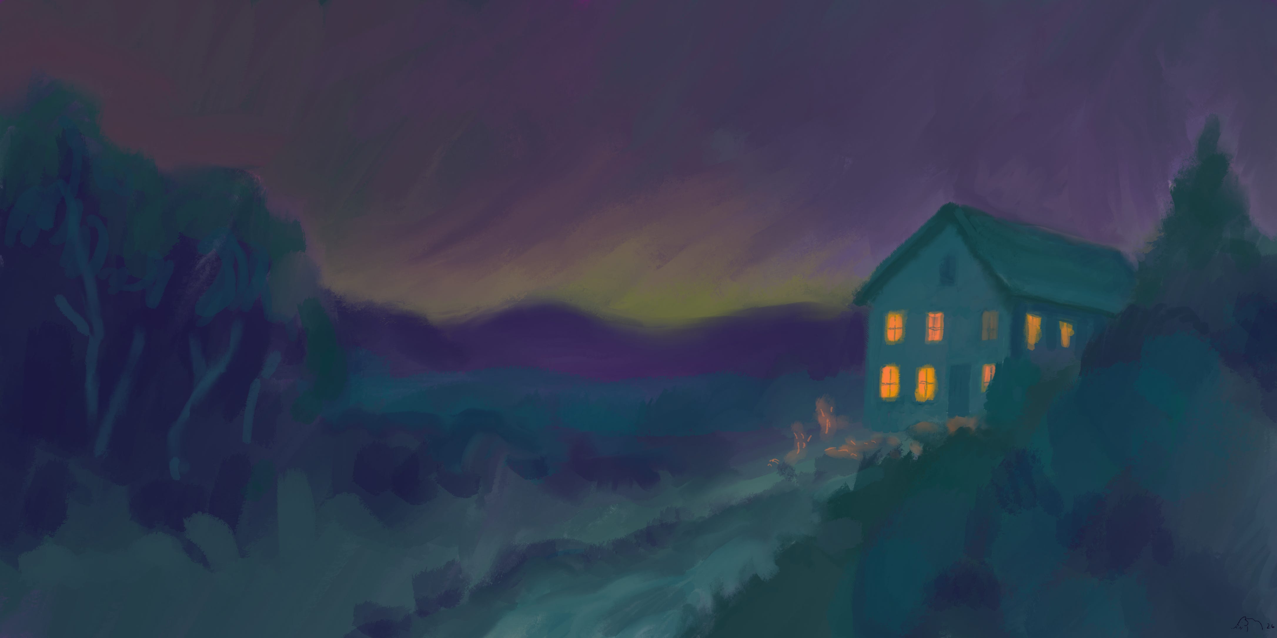 If not black and white, then what? Let’s keep thinking about pigment. Darkness is a feature of life. When the sun goes down, color is not lost; rather, color absorbs more color into itself. Pigments at night are in the presence of a greater amount of color in the atmosphere, so they absorb the dominant color. You might say colors are drawn to each other. So what is this greater presence of color at night? Most people would say black is disguising the color we see in daylight, but I’m inspired to think about it differently.